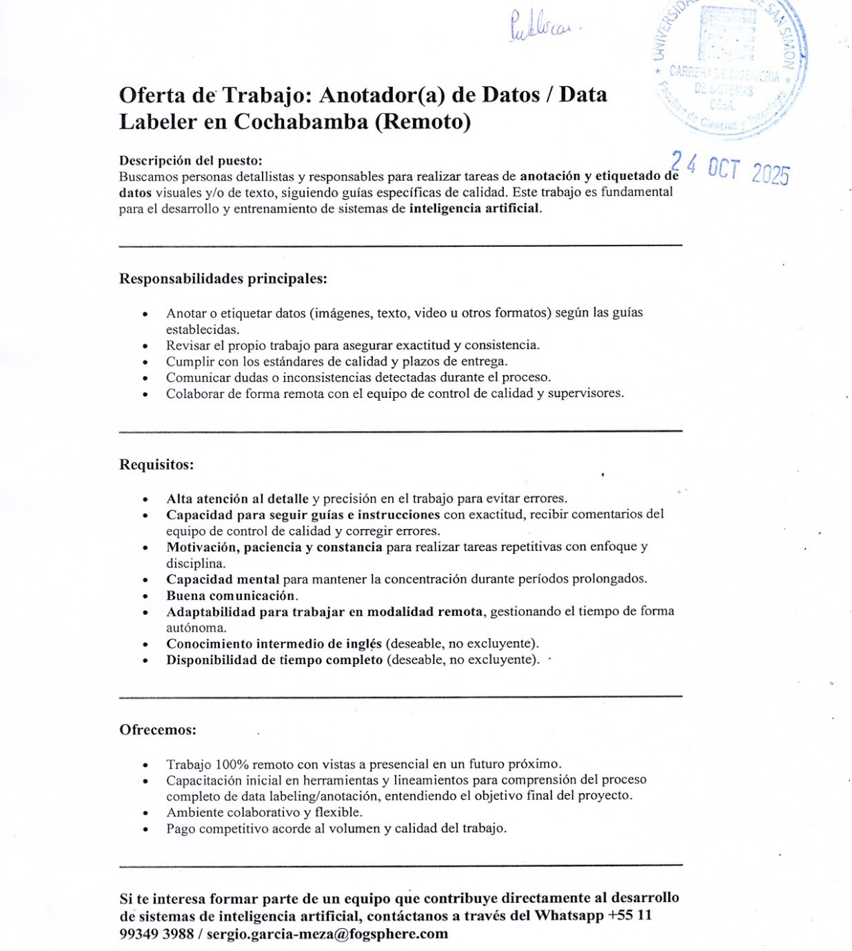 Trabajo Remoto: Anotador(a) de Datos CBBA