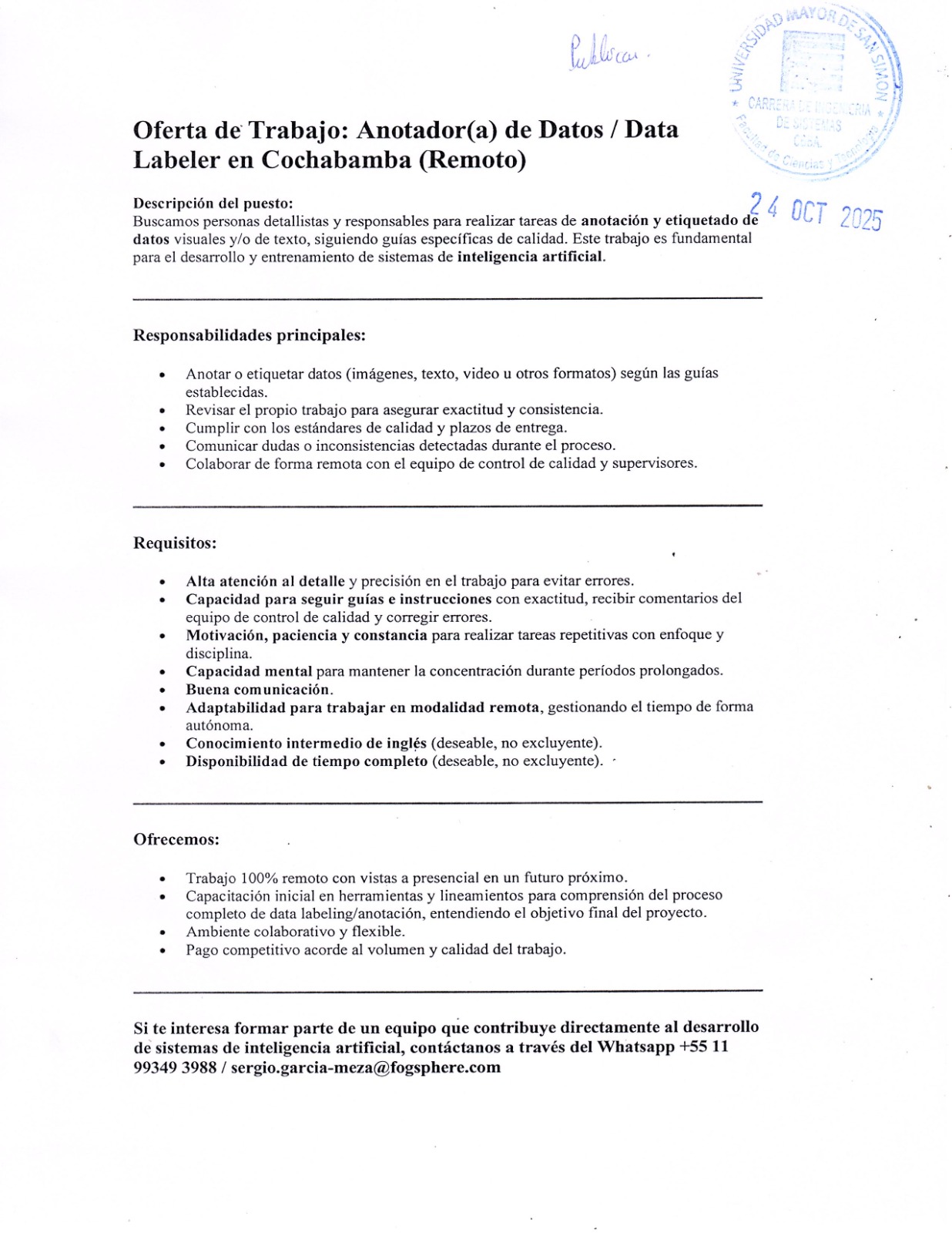 Trabajo Remoto: Anotador(a) de Datos CBBA |